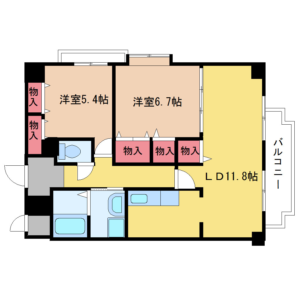 | 間取り詳細 | 洋室 6.7畳 、洋室 5.4畳 、LD 11.8畳 |