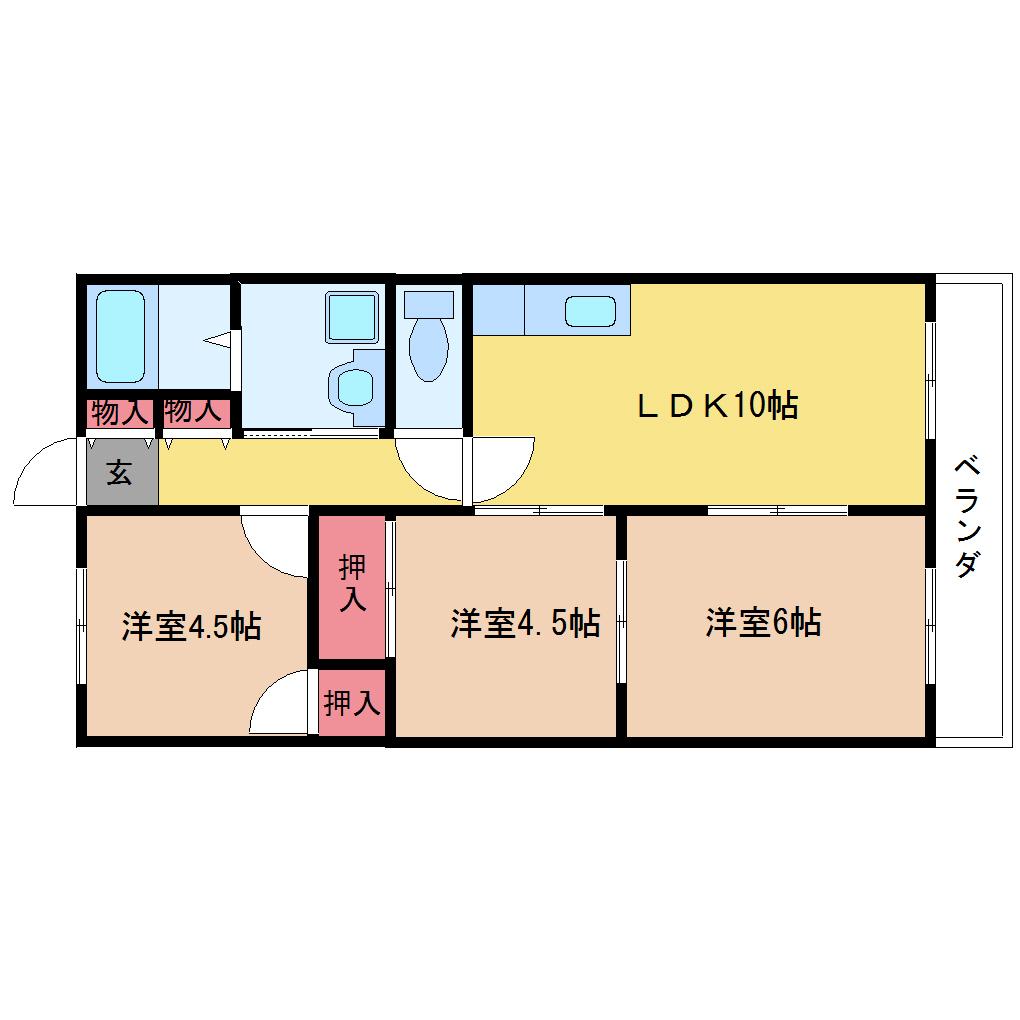 | 間取り詳細 | 洋室 6畳 、洋室 4.5畳 、洋室 4.5畳 、LDK 10畳 |