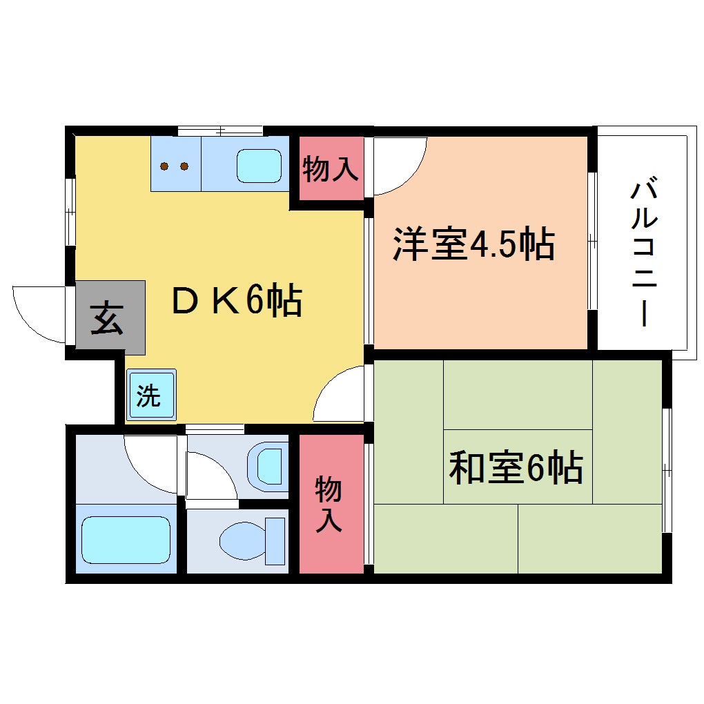 | 間取り詳細 | 洋室 4.5畳 、和室 6畳 、DK 6畳 |