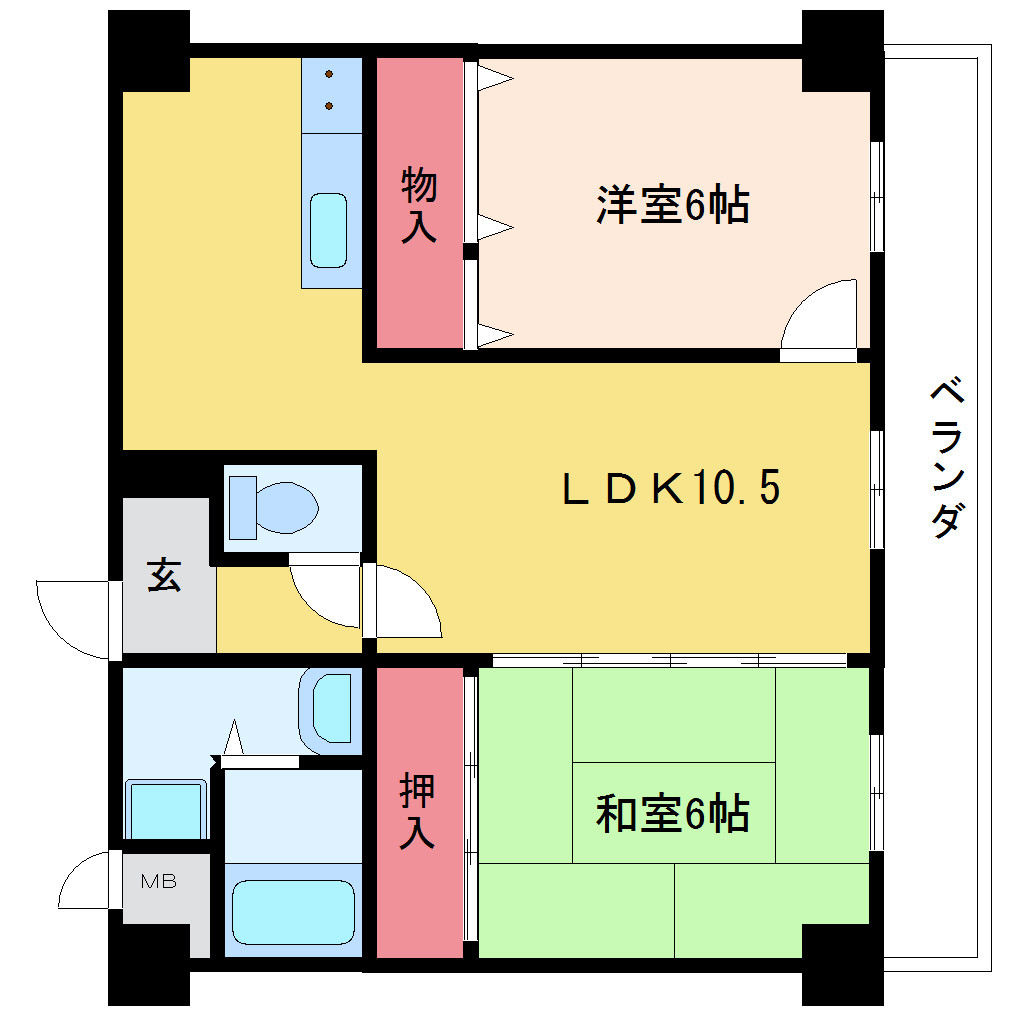 | 間取り詳細 | LDK 10.5畳 、和室 6畳 、洋室 6畳 |