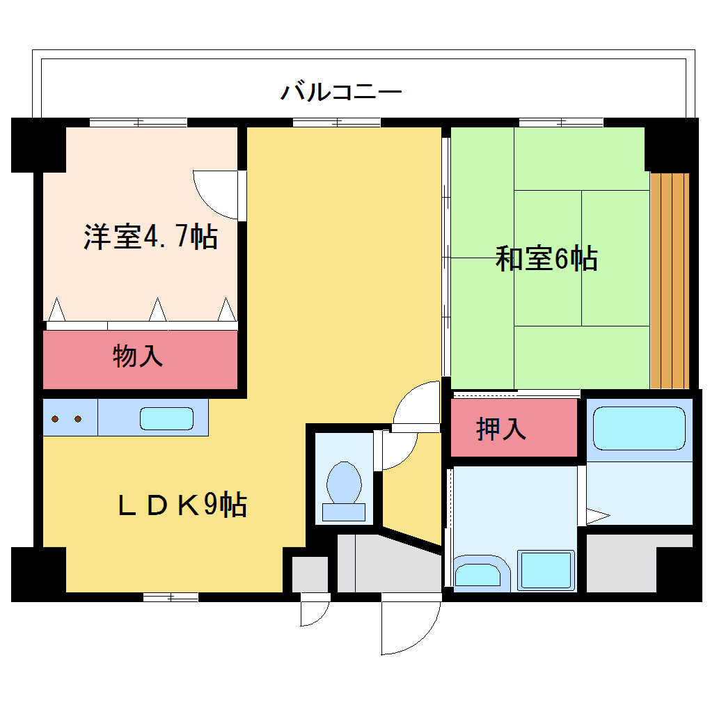 | 間取り詳細 | LDK 9畳 、和室 6畳 、洋室 4.7畳 |