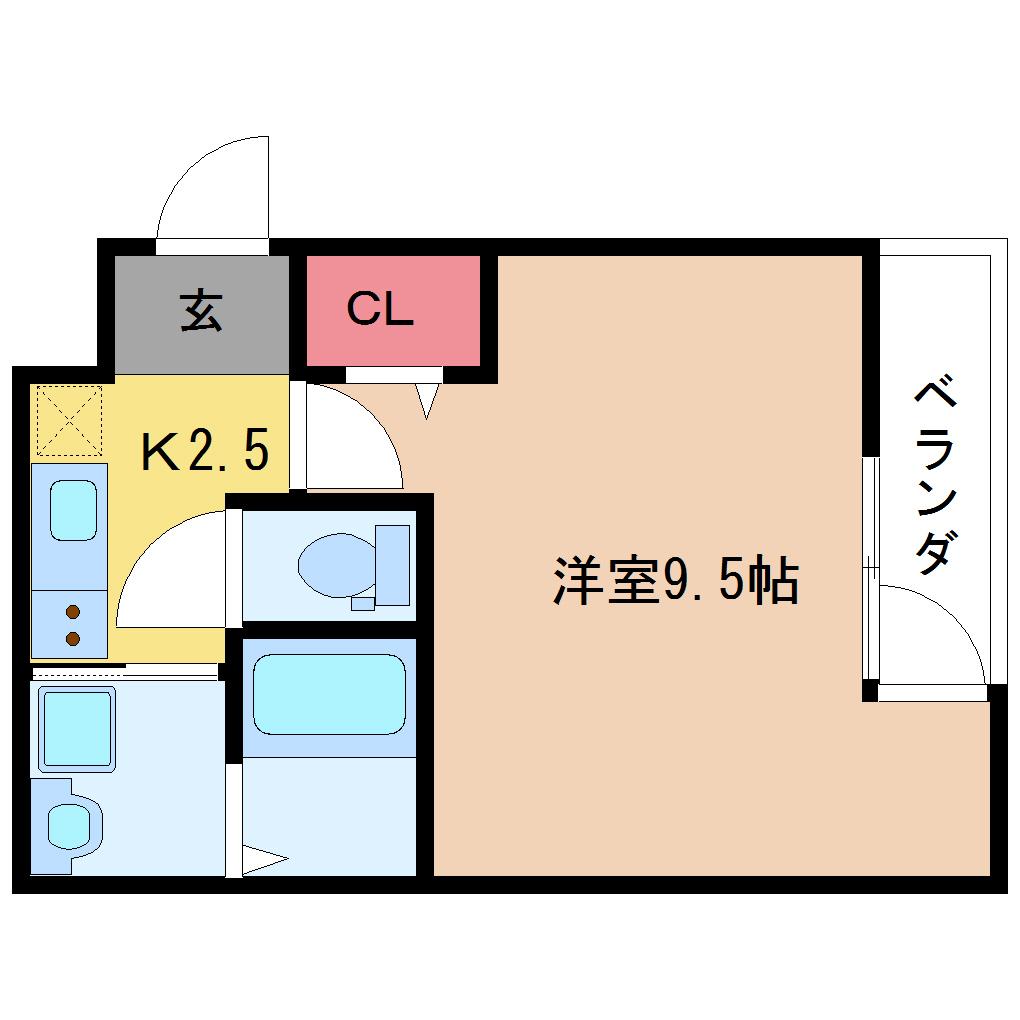 洋室 9.5畳 、K 2.5畳