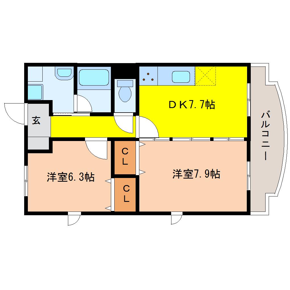 | 間取り詳細 | 洋室 7.9畳 、洋室 6.3畳 、LDK 7.7畳 |