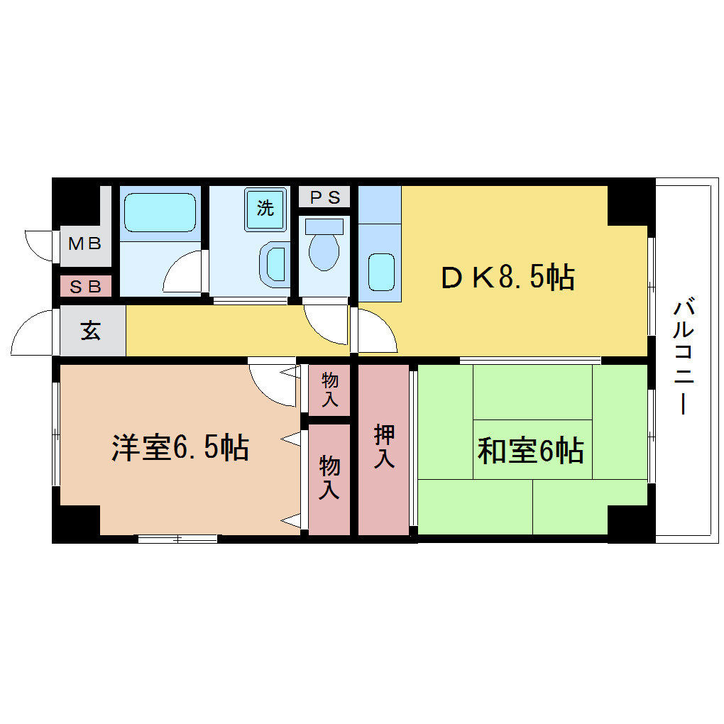 | 間取り詳細 | DK 8.5畳 、洋室 6.5畳 、和室 6畳 |