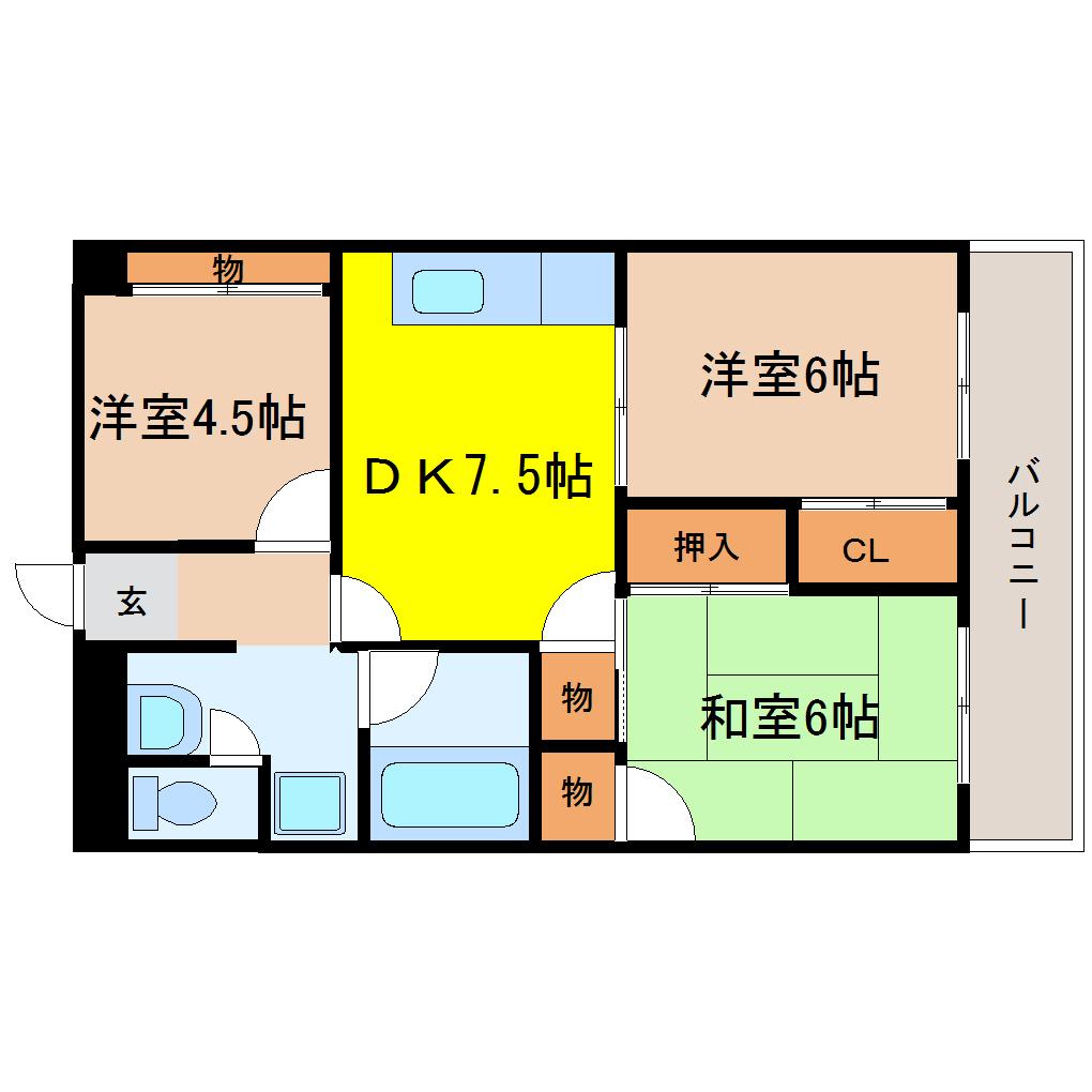 | 間取り詳細 | DK 7.5畳 、洋室 4.5畳 、洋室 6畳 、和室 6畳 |