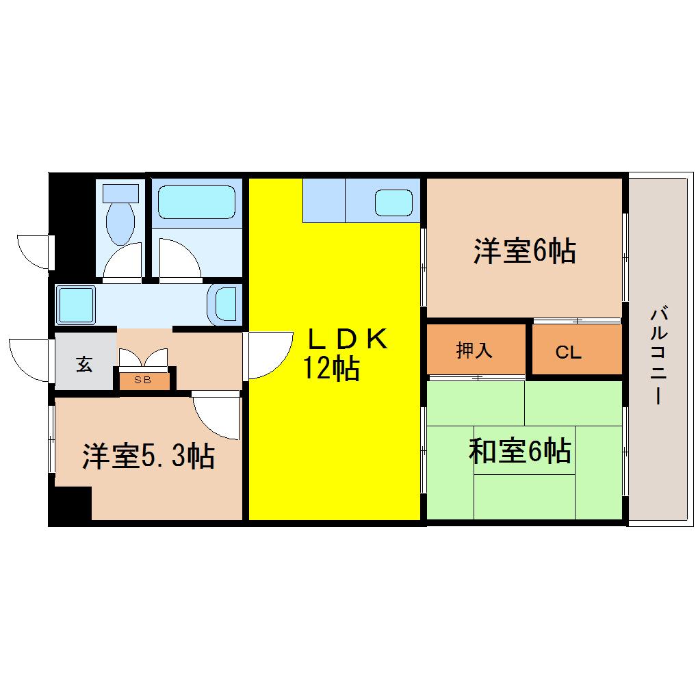 | 間取り詳細 | LDK 12畳 、洋室 5.3畳 、洋室 6畳 、和室 6畳 |