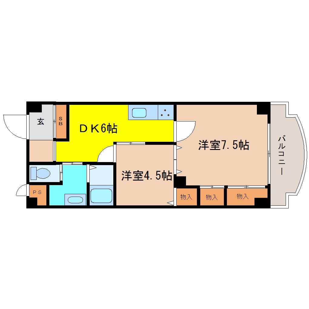 | 間取り詳細 | DK 6畳 、洋室 4.5畳 、洋室 7.5畳 |