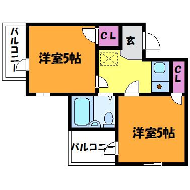 | 間取り詳細 | 洋室 5.5畳 、洋室 5.5畳 、K 2.5畳 |