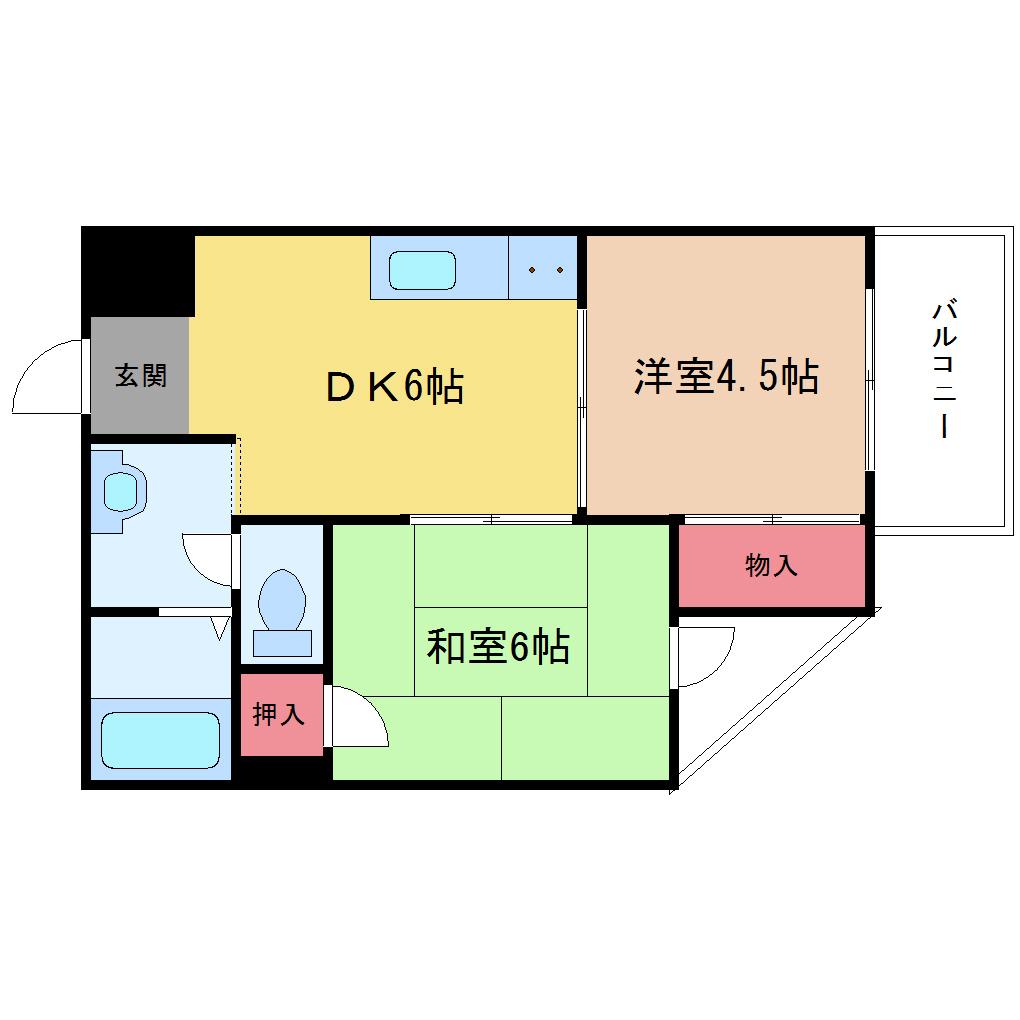 | 間取り詳細 | DK 6畳 、洋室 4.5畳 、和室 6畳 |