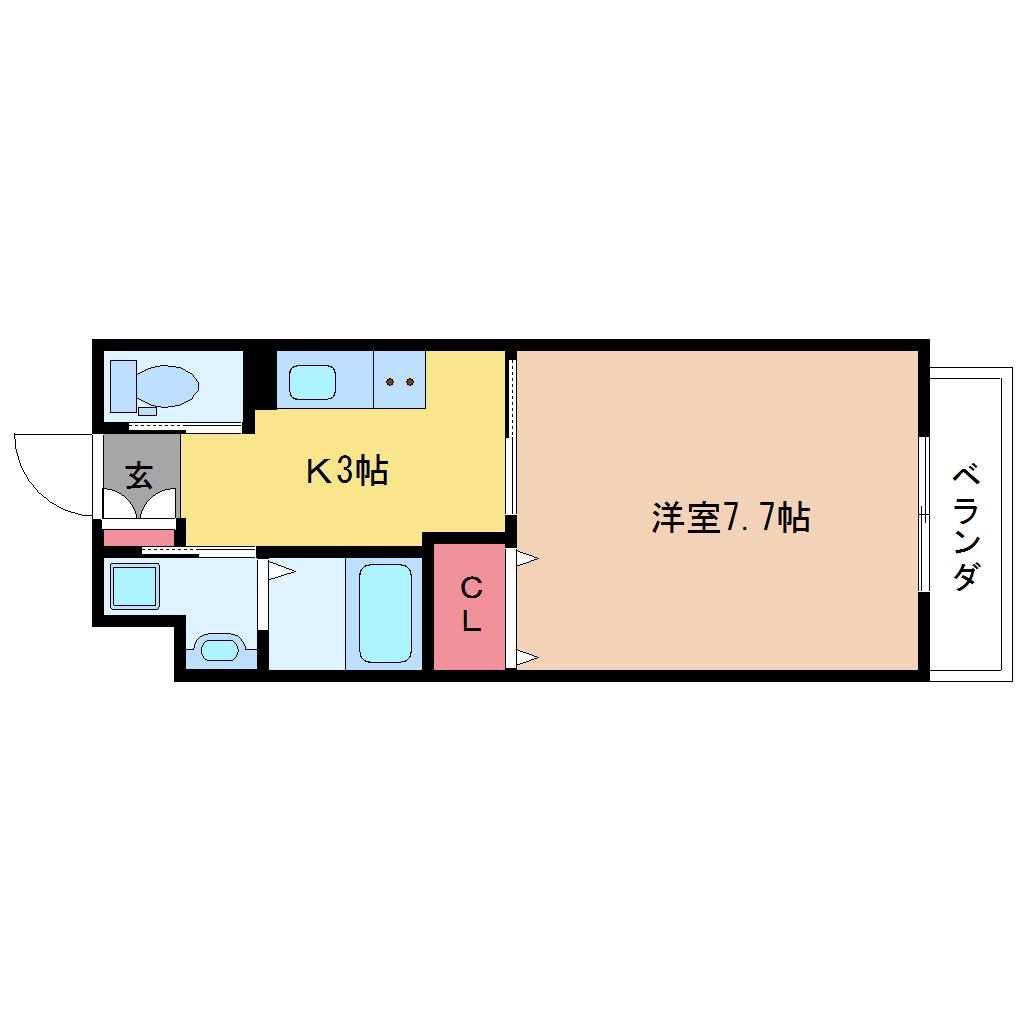 洋室 7.7畳 、K 3畳