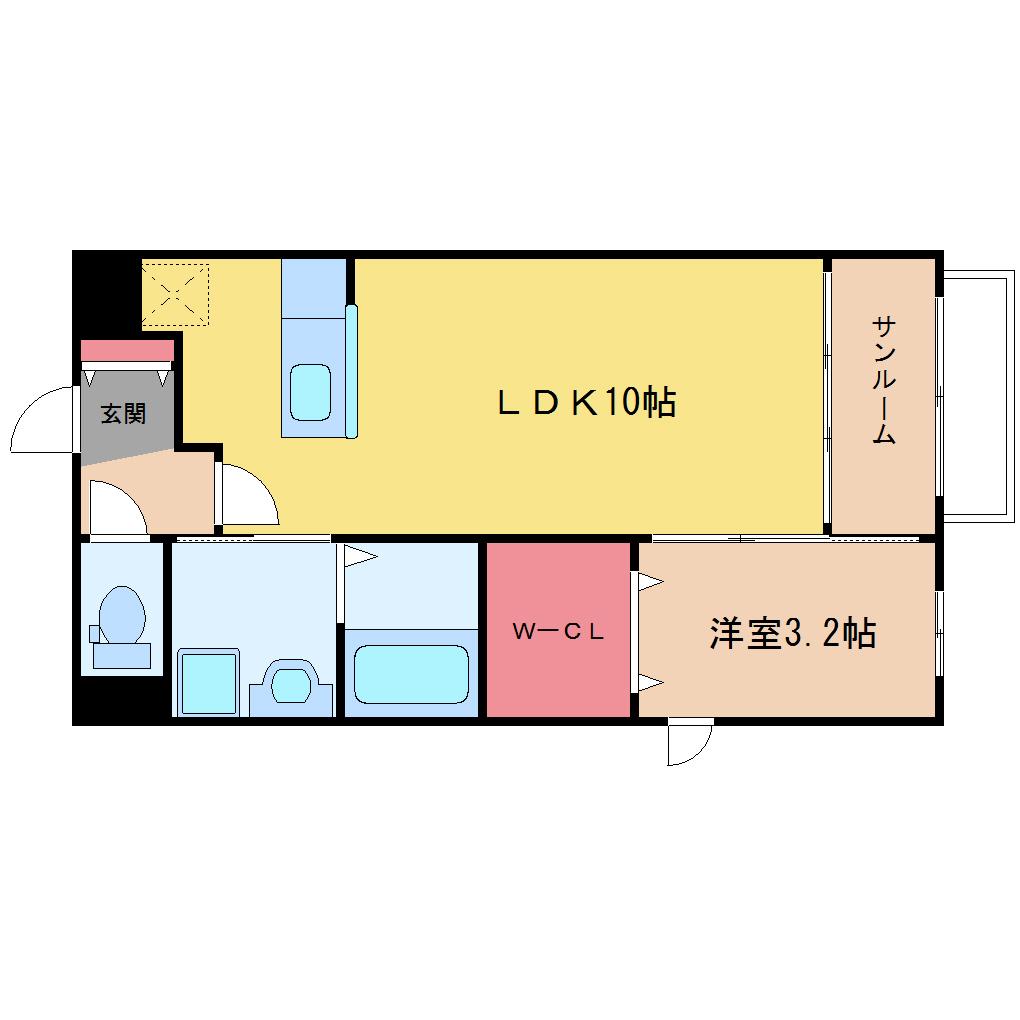 | 間取り詳細 | LDK 10畳 、洋室 3.2畳 |