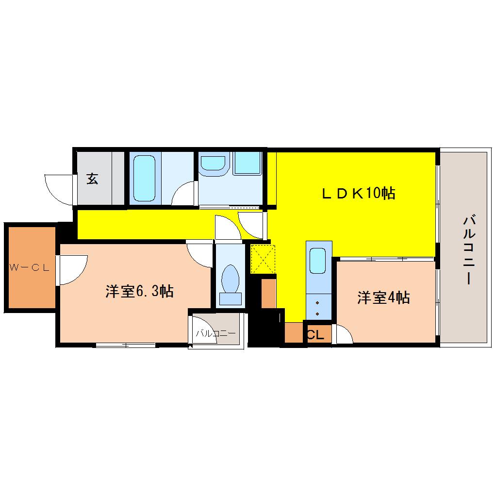 | 間取り詳細 | LDK 10.6畳 、洋室 4畳 、洋室 6.3畳 |