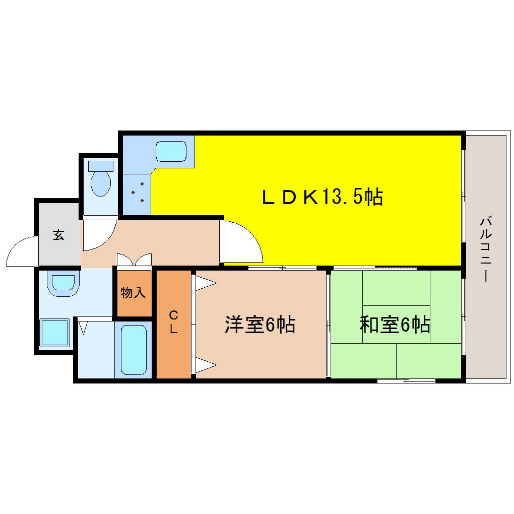| 間取り詳細 | LDK 13.5畳 、和室 6畳 、洋室 6畳 |