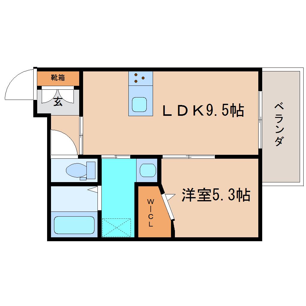 LDK 9.5畳 、洋室 5.3畳